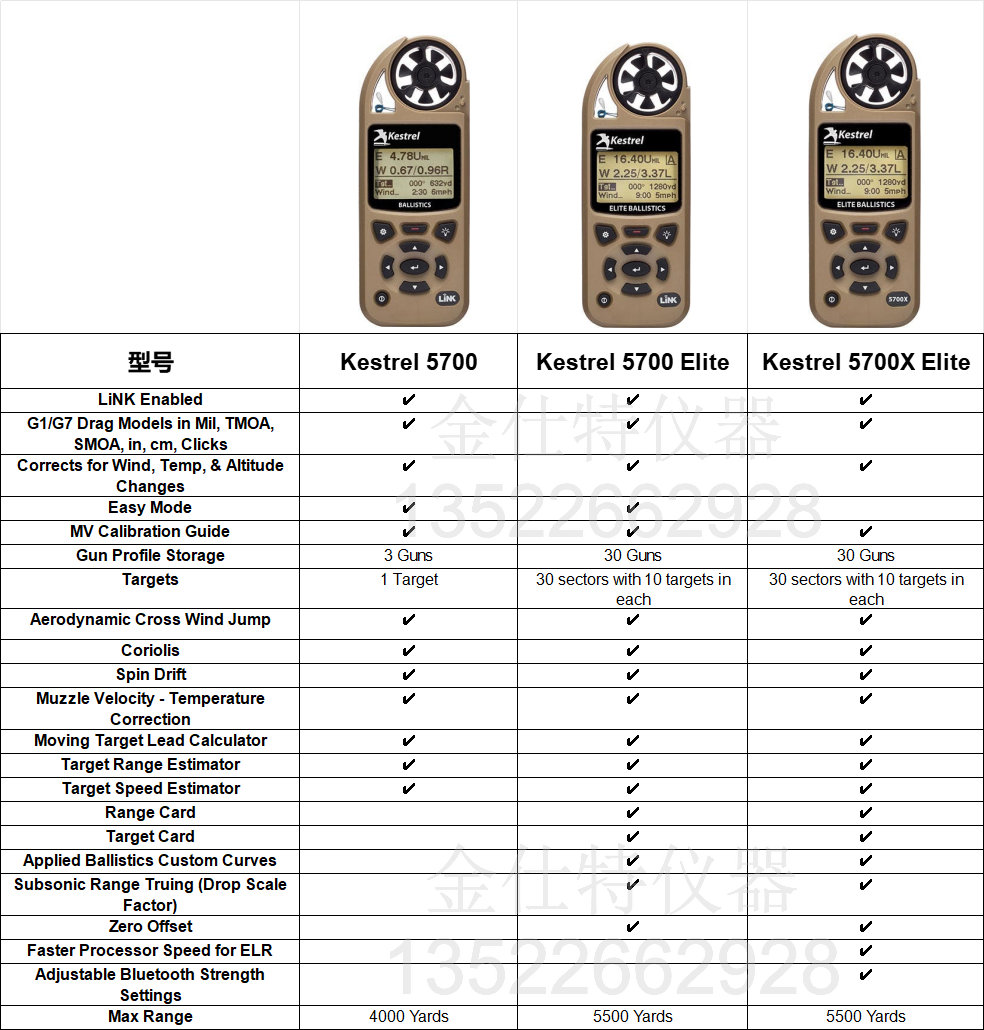 那麽Kestrel 57005700elite 的區别是什麽呢? elite擁有專有的Applied Ballistics軟件。 5700有彈道學軟件,但它不是應用彈道學。 如果你想要功能好的,請獲得elite